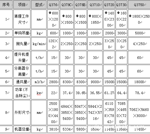 如需索取吊鉤式拋丸清理機Q3730詳細技術資料請與本公司聯(lián)系,公司也可根據(jù)客戶的具體要求來確定技術參數(shù),為客戶量身定做。歡迎新老客戶來公司考察面談!